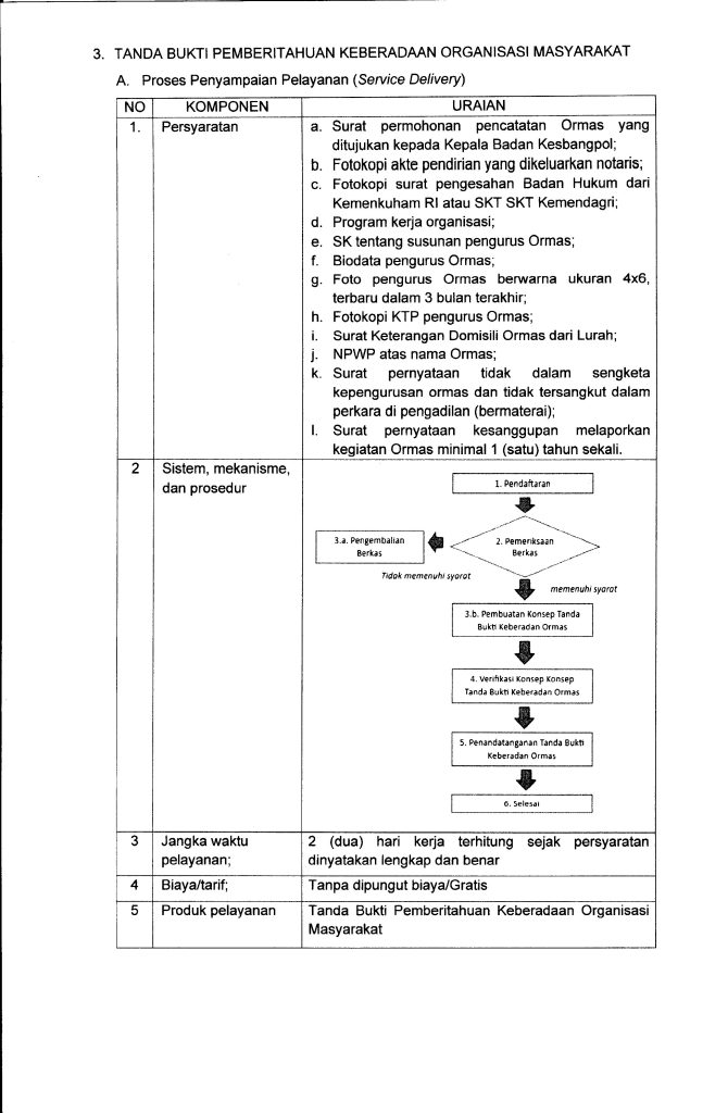 Persyaratan Penerbitan Tanda Bukti Pemberitahuan Keberadaan Ormas